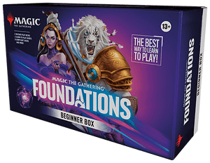 Start your Magic journey with the Foundations Beginner Box! It includes everything you need for your first games—two easy-to-learn decks, a handy guide, playmats, and bonus packs. Perfect for new and returning players ready to dive into the fun!